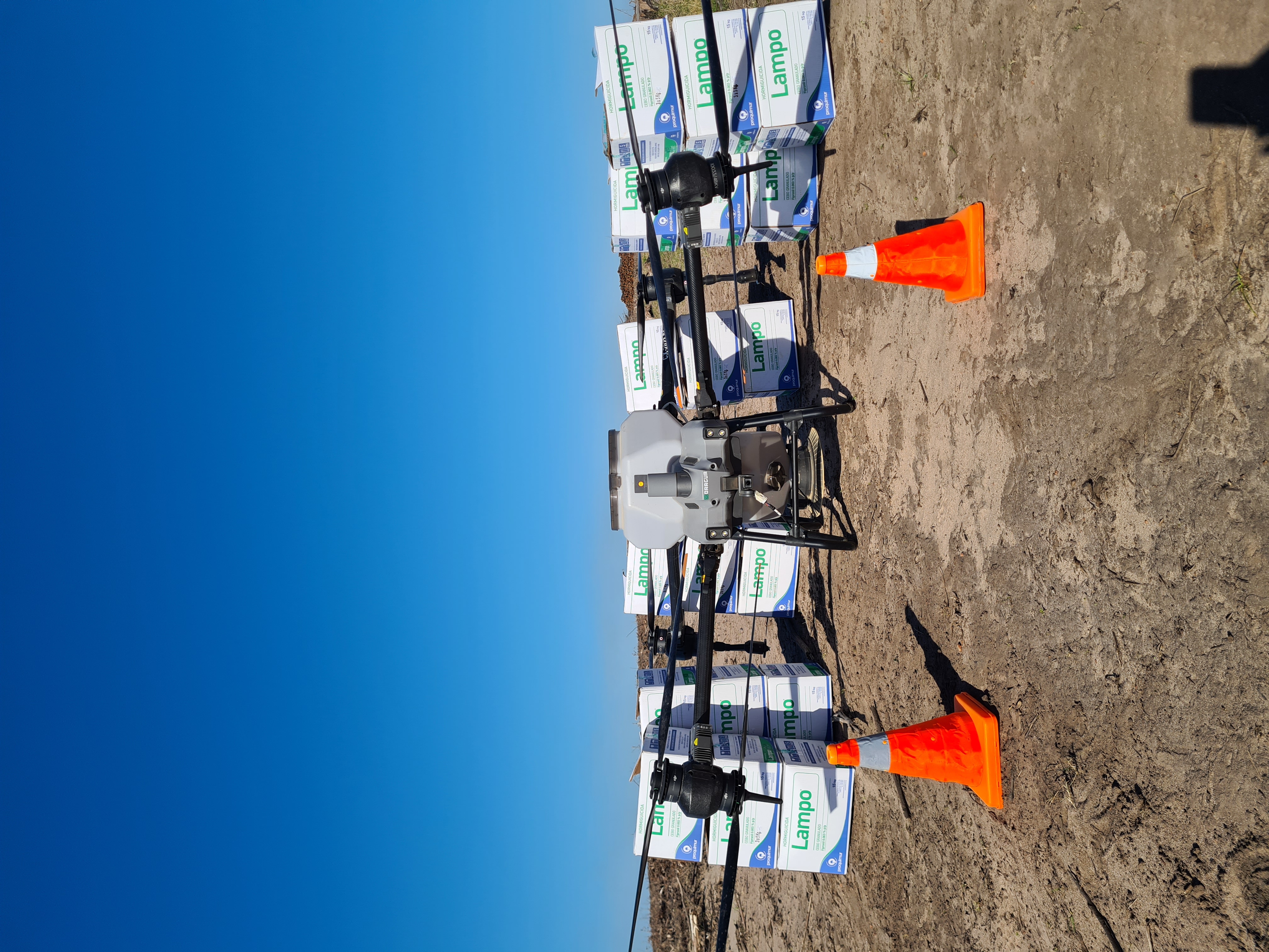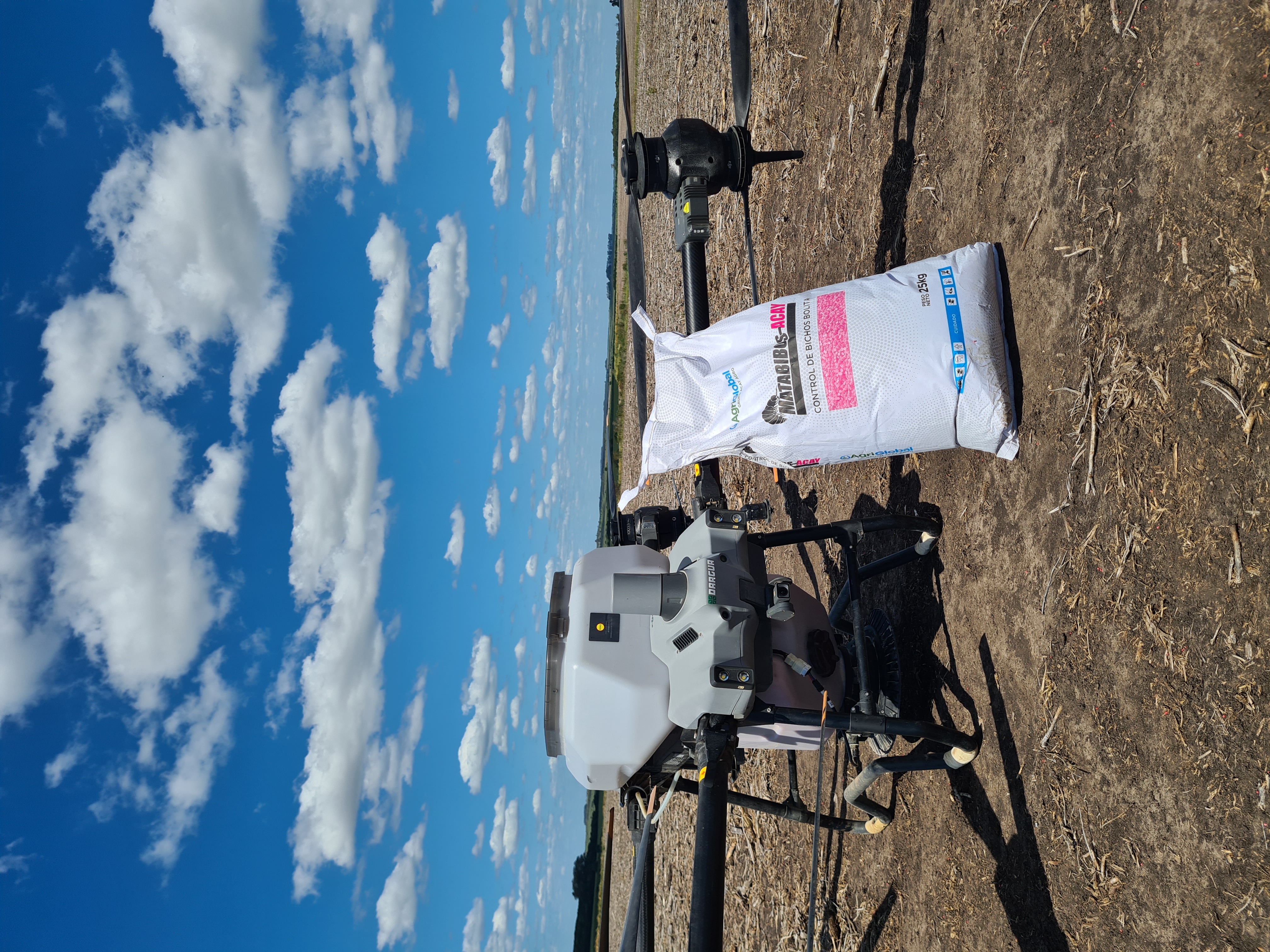 Nuestro dron permite cubrir grandes áreas y realizar aplicaciones de cebo a baja dosis por hectarea logrando uns distribución uniforme en toda la chacra.